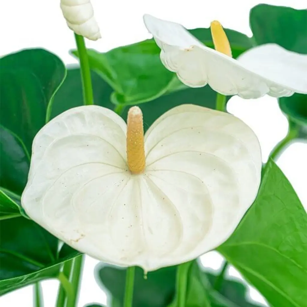 The White Flamingo Plant is one of the few flowering houseplants that produces blooms year-round. The elegant white Anthurium flowers stand out beautifully against the deep green foliage. Thanks to its easy care, this plant is perfect for your home or office.