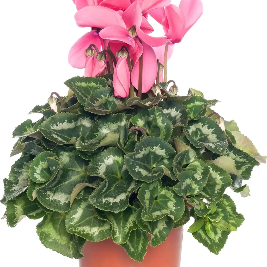 The Cyclamen (Alpine Violet) is a charming indoor and balcony plant with soft pink flowers and compact, glossy leaves. Perfect for windowsills, balconies, or as a colorful accent in your home.