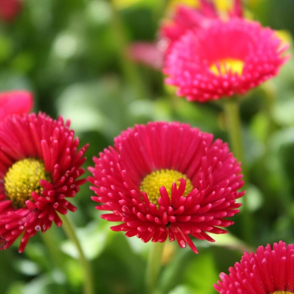Red English Daisy (Bellis perennis) – Charming spring bloomer with a playful touch