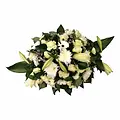 Each arrangement is thoughtfully designed by Firenze Bloemen. A refined combination of white roses, white germini, and white lilies, complemented by seasonal flowers and fresh greenery, creates a harmonious and dignified tribute.