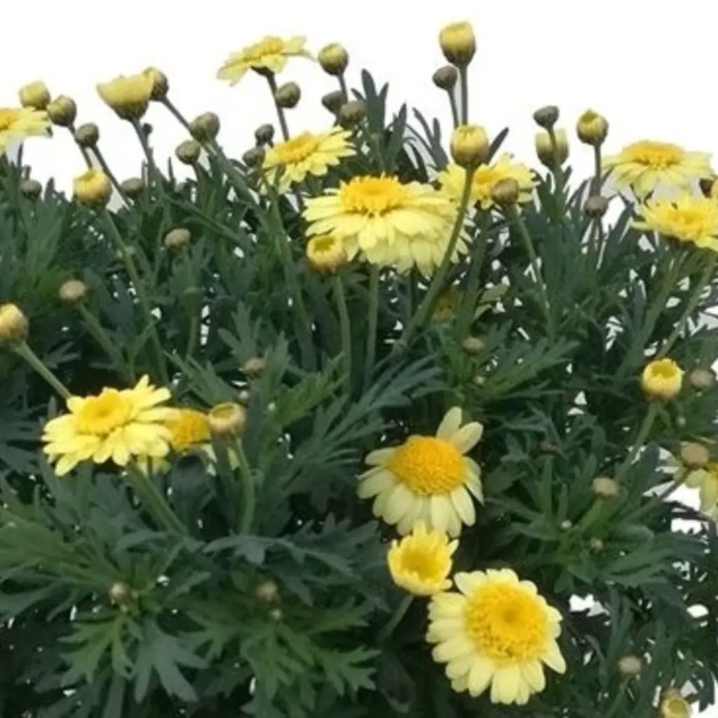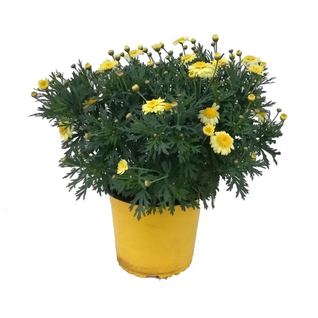 The Marguerite daisy (Argyranthemum) is a cheerful, long-flowering plant that brings color and light to any garden or balcony. With its fresh green foliage and large white or colored flowers, this plant guarantees summer-long bloom. Ideal for borders, containers, or as a striking feature in patio pots.