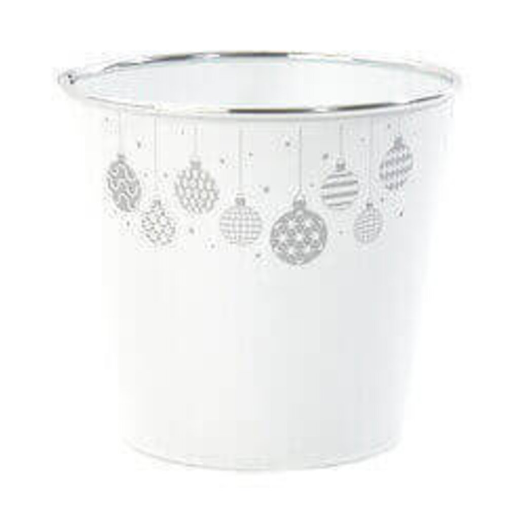 Order Zinc Pot Ø18 with White/Silver Christmas Ball now