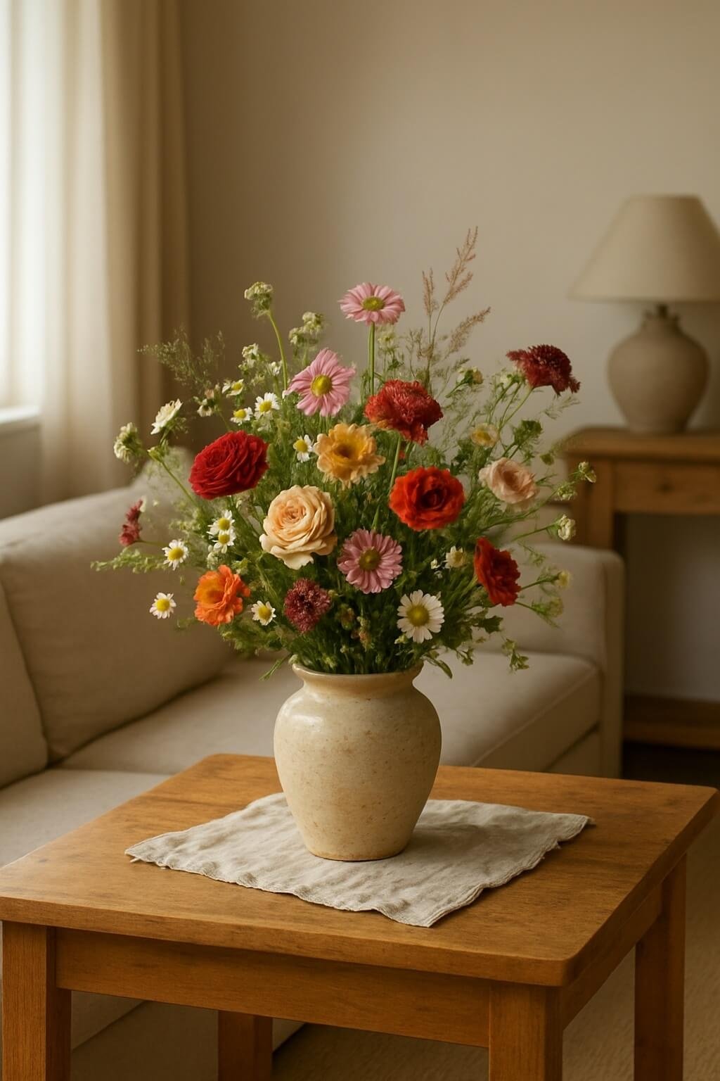 Bouquets champêtres – libres, colorés et pleins de fantaisie. Parfaits sur une table en bois ou un buffet. Découvrez nos bouquets champêtres pour un charme campagne instantané.