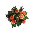 Fleurs orange et rouges, comme roses, gerberas ou autres fleurs de saison