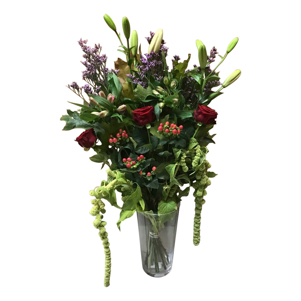 Le Bouquet Champêtre Rouge et Lys apporte les couleurs vibrantes d’un champ de fleurs dans ton intérieur. Ce bouquet ludique et élégant combine fleurs rouges profondes et lys élégants avec feuillage de saison et accents doux — parfait comme cadeau ou pour un espace de vie stylé.