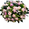 Notre couronne funéraire rose standard contient des roses roses, des fleurs de saison et des feuillages verts. Vous pouvez toujours indiquer vos préférences.