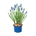 Het Blauwe Druifje (Muscari) is een geliefde voorjaarsbloem die met haar dichte trosjes kleine, klokvormige bloemetjes in helderblauw, paars of wit meteen een vrolijke lentesfeer brengt in huis of tuin. Deze charmante plant bloeit van maart tot mei en staat symbool voor vernieuwing en frisheid.