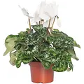 De Cyclaam (Alpenviool) is een charmante kamer- en balkonplant met elegante witte bloemen en compacte, glanzende bladeren. Ideaal voor op de vensterbank, balkon of als verfijnd accent in huis.