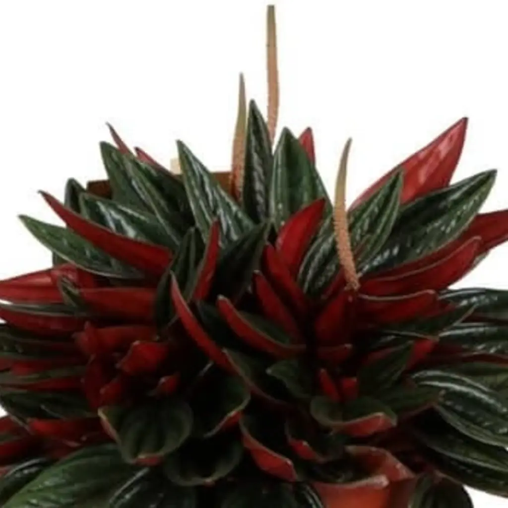 De Rattenstaart – Peperomia caperata ‘Rosso’ is een compacte en decoratieve kamerplant die je interieur direct meer kleur en textuur geeft. De hartvormige, donkergroene bladeren met dieprode onderzijde zorgen voor een opvallend contrast en maken deze plant een echte blikvanger op vensterbank, bureau of in een hangpot. Dankzij de makkelijke verzorging is de ‘Rosso’ ideaal voor zowel beginnende als ervaren plantenliefhebbers en past hij perfect in (thuis)kantoren of als subtiele sfeermaker in huis.